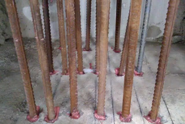 植筋技术是先在构件上打孔,然后注入专用粘结剂,插入钢筋,待粘结剂硬化后,钢筋通过与周围混凝土粘结成整体,从而进行锚圊的技术。该种方法的关键在于粘结剂的选择,目前常用的粘结剂有以环氧树脂为基本材料的有机化学粘结剂和以无收缩快硬硅酸盐水泥为胶结材料配制的“浆锚砂浆”。  近年来,植筋锚固技术已经取得了长足的进展,其在抗震加固中也有了广泛的应用。与其他方法相比,植筋锚固具有施工方便、性能可靠的突出优点,目前这种技术还在不断研究、改进中,一种经济指标好、技术性能高的粘结剂的研制成功,其必将对抗震加固产生极为有利的影响。