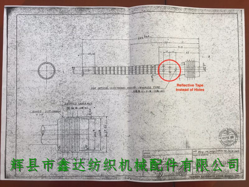 TOYODA Loom Wooden Weft Tube Drawing -